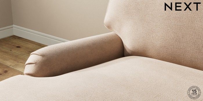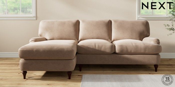 7.0.3 Buy Sadie Deep Relaxed Sit Medium Sofa Chaise - Left Hand Luxe Chenille Mid Natural High Slim Turned - Dark Brown from the Next UK online shop Click here to use our accessible website