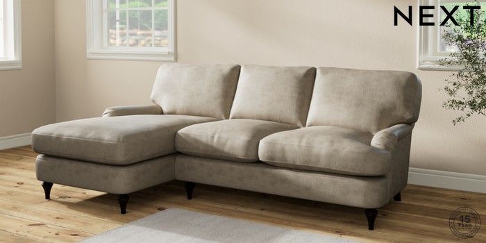 6.12.1 Buy Sadie Deep Relaxed Sit Medium Sofa Chaise - Left Hand Monza Faux Leather Easy Clean Mink Brown High Slim Turned - Dark from the Next UK online shop Click here to use our accessible website
