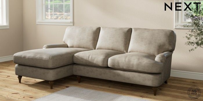 6.12.1 Buy Sadie Deep Relaxed Sit Medium Sofa Chaise - Left Hand Monza Faux Leather Easy Clean Mink Brown High Slim Turned - Mid from the Next UK online shop Click here to use our accessible website