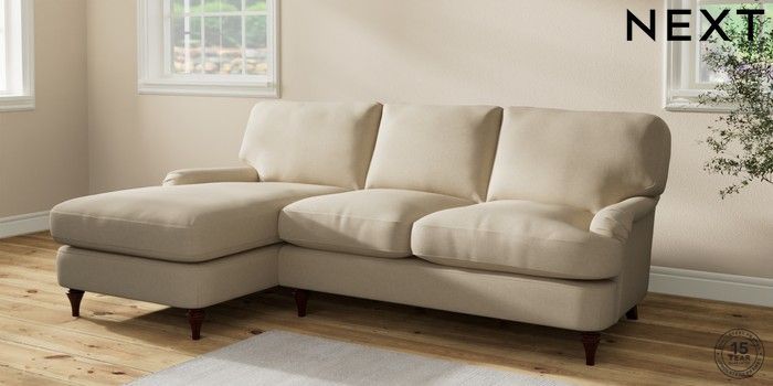 6.12.1 Buy Sadie Deep Relaxed Sit Medium Sofa Chaise - Left Hand Natural Mix Light Natural High Slim Turned - Dark Brown from the Next UK online shop Click here to use our accessible website
