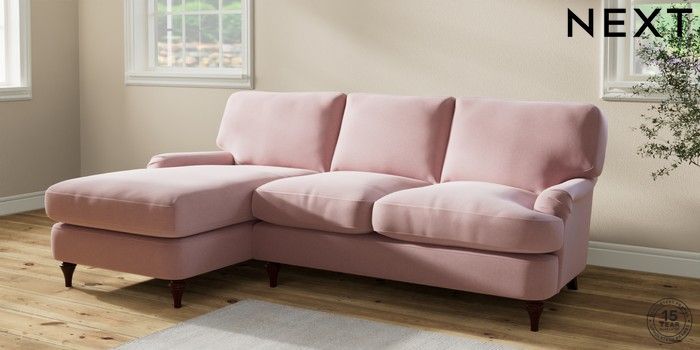 6.12.1 Buy Sadie Deep Relaxed Sit Medium Sofa Chaise - Left Hand Natural Mix Light Rose Pink High Slim Turned - Dark Brown from the Next UK online shop Click here to use our accessible website