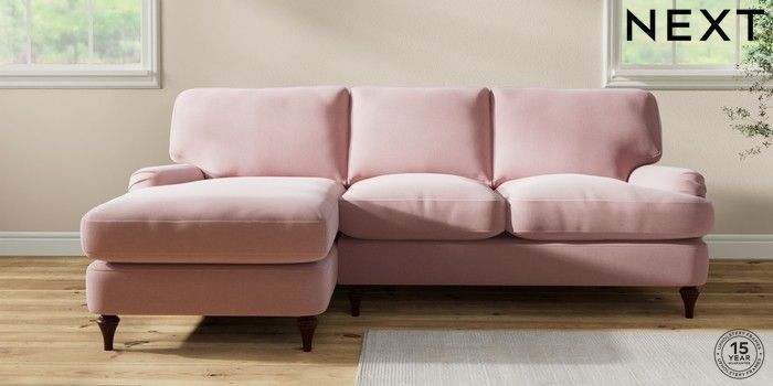 7.0.3 Buy Sadie Deep Relaxed Sit Medium Sofa Chaise - Left Hand Natural Mix Light Rose Pink High Slim Turned - Dark Brown from the Next UK online shop Click here to use our accessible website