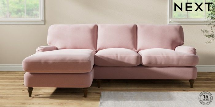 7.0.3 Buy Sadie Deep Relaxed Sit Medium Sofa Chaise - Left Hand Natural Mix Light Rose Pink High Slim Turned - Mid from the Next UK online shop Click here to use our accessible website