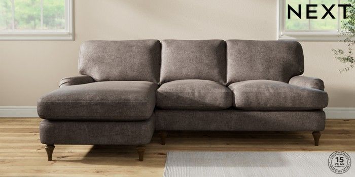 7.0.3 Buy Sadie Deep Relaxed Sit Medium Sofa Chaise - Left Hand Plush Chenille Mink Brown High Slim Turned - Mid from the Next UK online shop Click here to use our accessible website