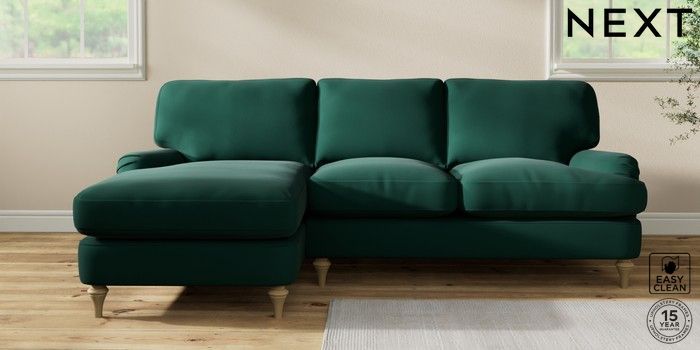 7.0.3 Buy Sadie Deep Relaxed Sit Medium Sofa Chaise - Left Hand Plush Velvet Easy Clean Bottle Green High Slim Turned - Light from the Next UK online shop Click here to use our accessible website