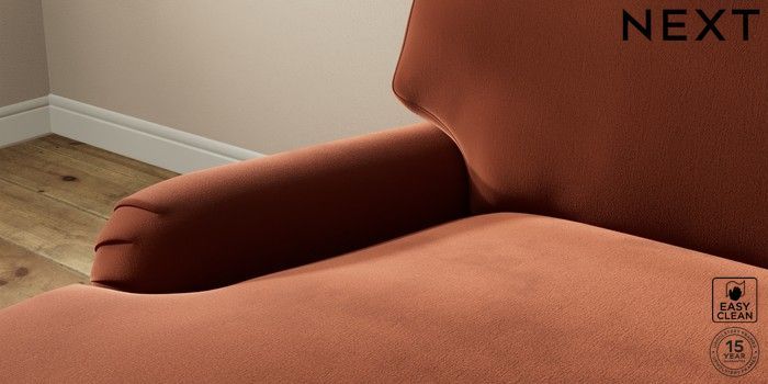 7.0.3 Buy Sadie Deep Relaxed Sit Medium Sofa Chaise - Left Hand Plush Velvet Easy Clean Ginger Orange High Slim Turned - Light from the Next UK online shop Click here to use our accessible website