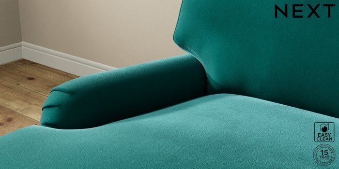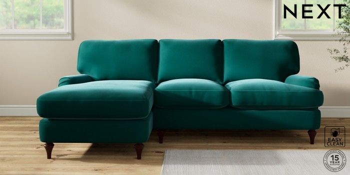 7.0.3 Buy Sadie Deep Relaxed Sit Medium Sofa Chaise - Left Hand Plush Velvet Easy Clean Juniper Green High Slim Turned - Dark Brown from the Next UK online shop Click here to use our accessible website