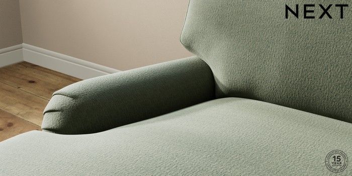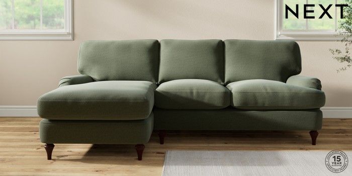 7.0.3 Buy Sadie Deep Relaxed Sit Medium Sofa Chaise - Left Hand Relaxed Linen Look Dark Green High Slim Turned - Dark Brown from the Next UK online shop Click here to use our accessible website