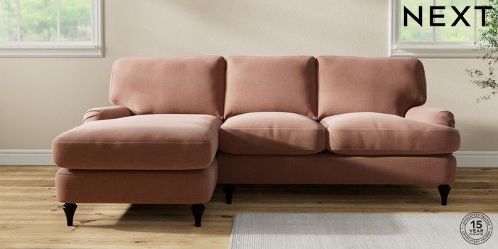 7.0.3 Buy Sadie Deep Relaxed Sit Medium Sofa Chaise - Left Hand Relaxed Linen Look Light Rust Brown High Slim Turned - Dark from the Next UK online shop Click here to use our accessible website