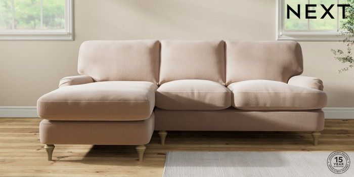 7.0.3 Buy Sadie Deep Relaxed Sit Medium Sofa Chaise - Left Hand Relaxed Linen Look Mid Natural High Slim Turned - Light from the Next UK online shop Click here to use our accessible website