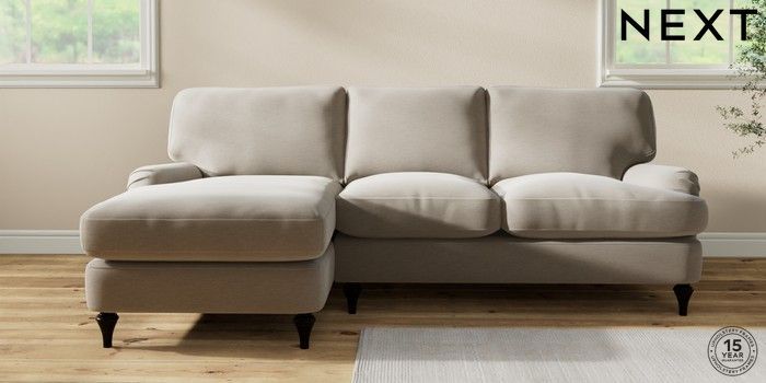 7.0.3 Buy Sadie Deep Relaxed Sit Medium Sofa Chaise - Left Hand Ripple Chenille Light Natural High Slim Turned - Dark from the Next UK online shop Click here to use our accessible website