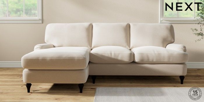 7.0.3 Buy Sadie Deep Relaxed Sit Medium Sofa Chaise - Left Hand Studio Chenille Oyster High Slim Turned - Dark from the Next UK online shop Click here to use our accessible website