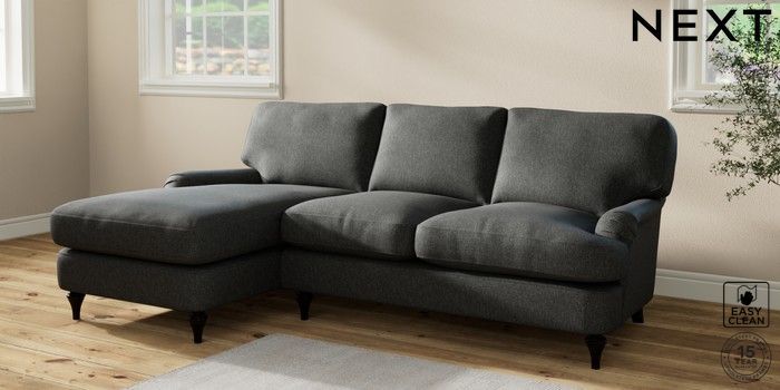 6.12.1 Buy Sadie Deep Relaxed Sit Medium Sofa Chaise - Left Hand Tweedy Blend Easy Clean Charcoal Grey High Slim Turned - Dark from the Next UK online shop Click here to use our accessible website