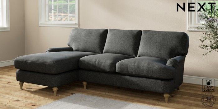 6.12.1 Buy Sadie Deep Relaxed Sit Medium Sofa Chaise - Left Hand Tweedy Blend Easy Clean Charcoal Grey High Slim Turned - Light from the Next UK online shop Click here to use our accessible website