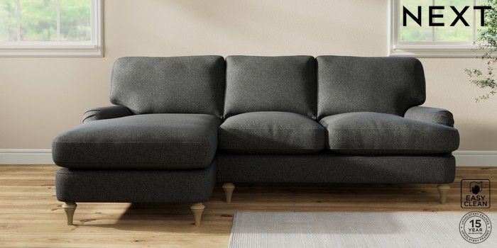 7.0.3 Buy Sadie Deep Relaxed Sit Medium Sofa Chaise - Left Hand Tweedy Blend Easy Clean Charcoal Grey High Slim Turned - Light from the Next UK online shop Click here to use our accessible website