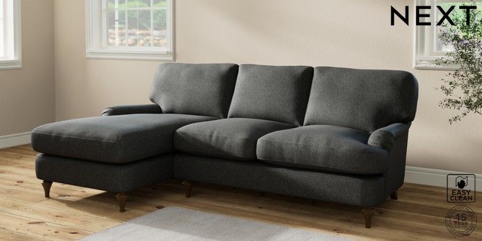 6.12.1 Buy Sadie Deep Relaxed Sit Medium Sofa Chaise - Left Hand Tweedy Blend Easy Clean Charcoal Grey High Slim Turned - Mid from the Next UK online shop Click here to use our accessible website