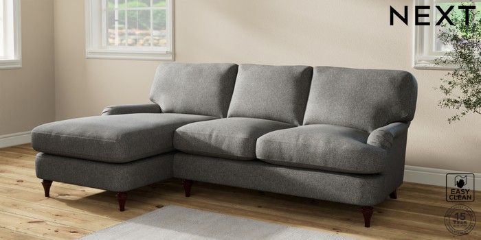 6.12.1 Buy Sadie Deep Relaxed Sit Medium Sofa Chaise - Left Hand Tweedy Blend Easy Clean Dark Grey High Slim Turned - Dark Brown from the Next UK online shop Click here to use our accessible website