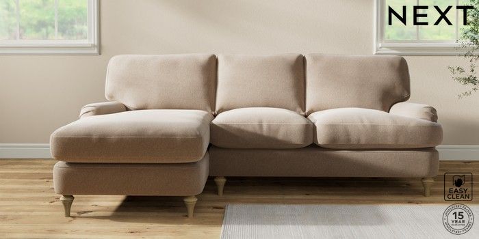 7.0.3 Buy Sadie Deep Relaxed Sit Medium Sofa Chaise - Left Hand Tweedy Blend Easy Clean Light Dove Natural High Slim Turned - Light from the Next UK online shop Click here to use our accessible website