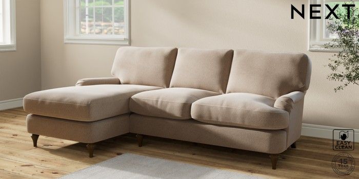 6.12.1 Buy Sadie Deep Relaxed Sit Medium Sofa Chaise - Left Hand Tweedy Blend Easy Clean Light Dove Natural High Slim Turned - Mid from the Next UK online shop Click here to use our accessible website