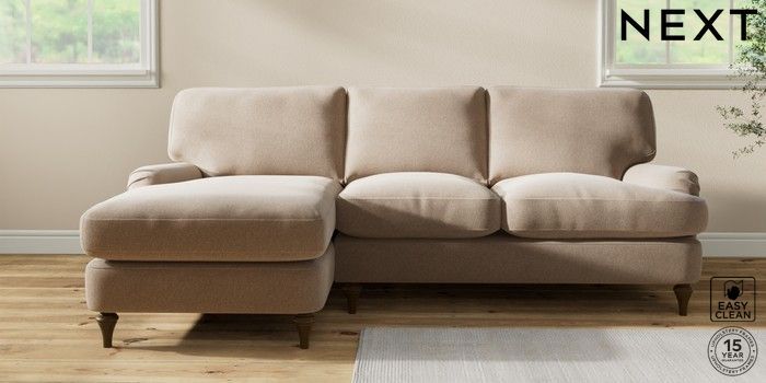 7.0.3 Buy Sadie Deep Relaxed Sit Medium Sofa Chaise - Left Hand Tweedy Blend Easy Clean Light Dove Natural High Slim Turned - Mid from the Next UK online shop Click here to use our accessible website