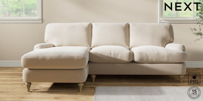 7.0.3 Buy Sadie Deep Relaxed Sit Medium Sofa Chaise - Left Hand Tweedy Blend Easy Clean Oyster High Slim Turned - Light from the Next UK online shop Click here to use our accessible website
