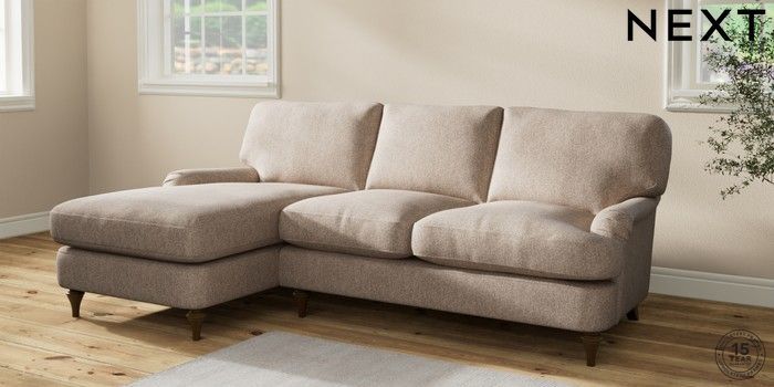 6.12.1 Buy Sadie Deep Relaxed Sit Medium Sofa Chaise - Left Hand Tweedy Chenille Mid Natural High Slim Turned - Mid from the Next UK online shop Click here to use our accessible website