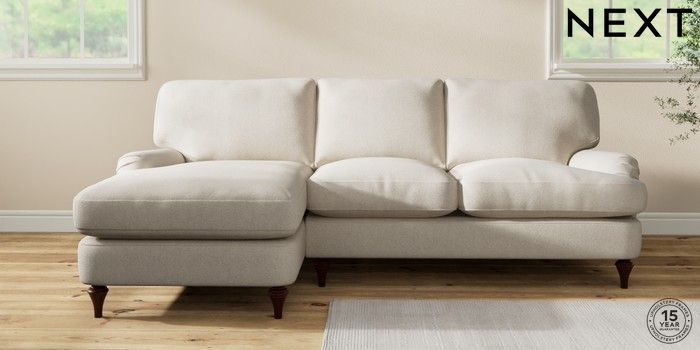 7.0.3 Buy Sadie Deep Relaxed Sit Medium Sofa Chaise - Left Hand Tweedy Chenille Oyster High Slim Turned - Dark Brown from the Next UK online shop Click here to use our accessible website