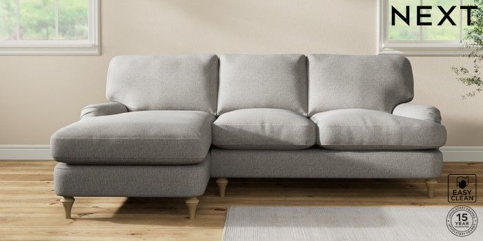 7.0.3 Buy Sadie Deep Relaxed Sit Medium Sofa Chaise - Left Hand Woven Chenille Easy Clean Light Grey High Slim Turned - Light from the Next UK online shop Click here to use our accessible website