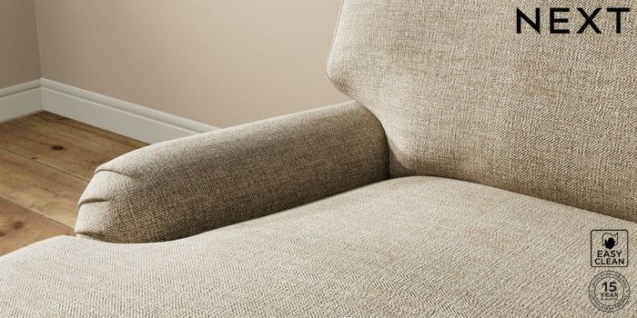 7.0.3 Buy Sadie Deep Relaxed Sit Medium Sofa Chaise - Left Hand Woven Chenille Easy Clean Mid Natural High Slim Turned - Dark from the Next UK online shop Click here to use our accessible website