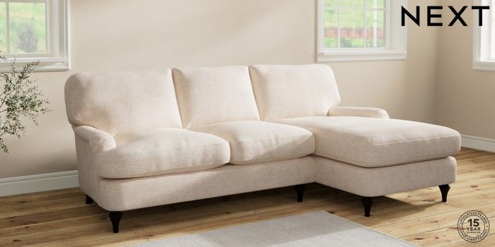 6.12.1 Buy Sadie Deep Relaxed Sit Medium Sofa Chaise - Right Hand Boucle Chenille Oyster High Slim Turned - Dark from the Next UK online shop Click here to use our accessible website