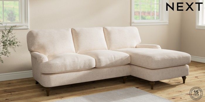 6.12.1 Buy Sadie Deep Relaxed Sit Medium Sofa Chaise - Right Hand Boucle Chenille Oyster High Slim Turned - Mid from the Next UK online shop Click here to use our accessible website