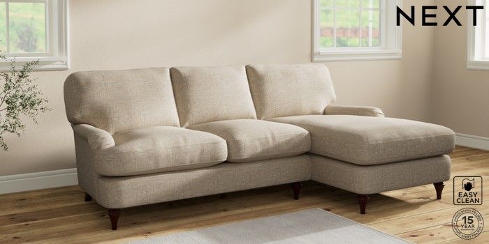 6.12.1 Buy Sadie Deep Relaxed Sit Medium Sofa Chaise - Right Hand Boucle Weave Easy Clean Dark Natural High Slim Turned - Dark Brown from the Next UK online shop Click here to use our accessible website