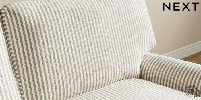 7.0.3 Buy Sadie Deep Relaxed Sit Medium Sofa Chaise - Right Hand Chenille Stripe Moss Green High Slim Turned - Mid from the Next UK online shop Click here to use our accessible website