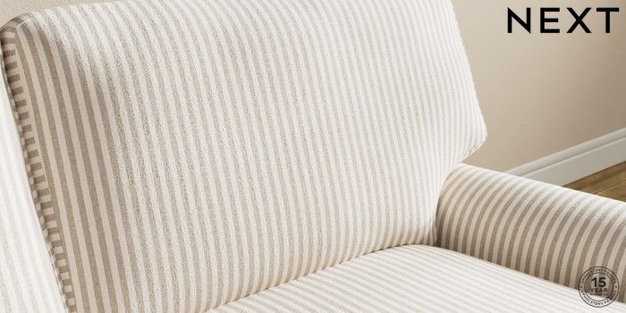 7.0.3 Buy Sadie Deep Relaxed Sit Medium Sofa Chaise - Right Hand Chenille Stripe Natural High Slim Turned - Dark from the Next UK online shop Click here to use our accessible website