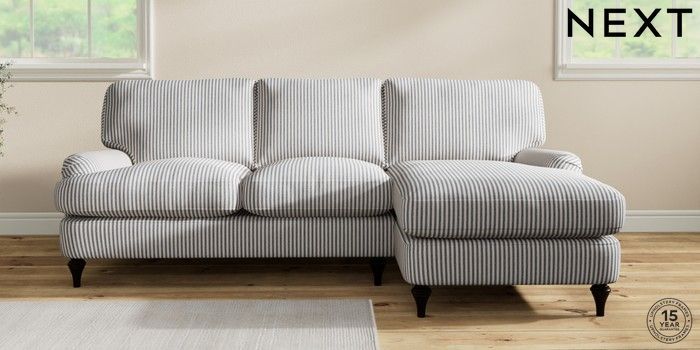 7.0.3 Buy Sadie Deep Relaxed Sit Medium Sofa Chaise - Right Hand Chenille Stripe Slate Blue High Slim Turned - Dark from the Next UK online shop Click here to use our accessible website
