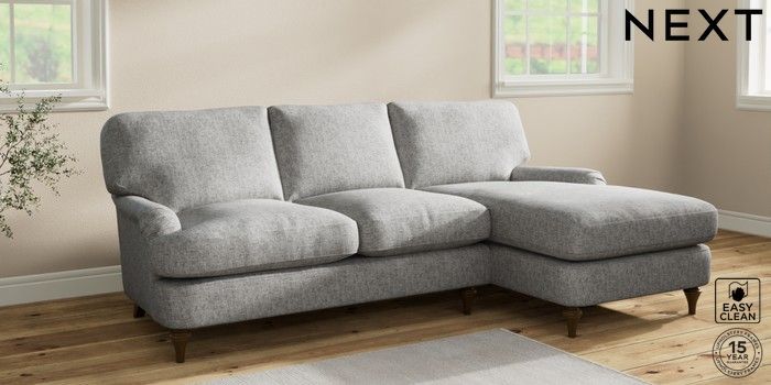 6.12.1 Buy Sadie Deep Relaxed Sit Medium Sofa Chaise - Right Hand Chunky Boucle Easy Clean Light Grey High Slim Turned - Mid from the Next UK online shop Click here to use our accessible website
