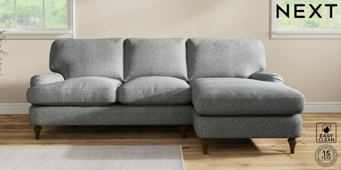 7.0.3 Buy Sadie Deep Relaxed Sit Medium Sofa Chaise - Right Hand Chunky Boucle Easy Clean Mid Grey High Slim Turned - Mid from the Next UK online shop Click here to use our accessible website