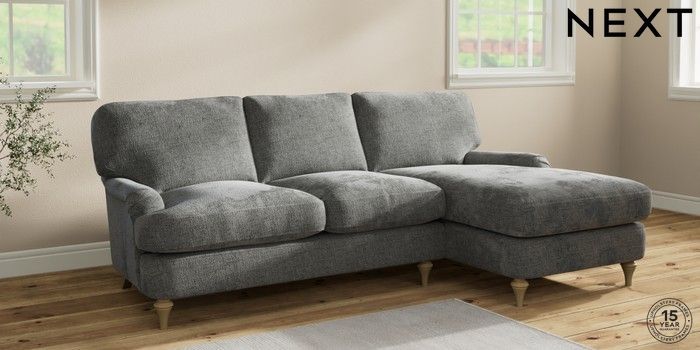 6.12.1 Buy Sadie Deep Relaxed Sit Medium Sofa Chaise - Right Hand Chunky Chenille Dark Grey High Slim Turned - Light from the Next UK online shop Click here to use our accessible website
