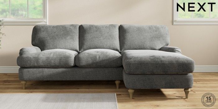 7.0.3 Buy Sadie Deep Relaxed Sit Medium Sofa Chaise - Right Hand Chunky Chenille Dark Grey High Slim Turned - Light from the Next UK online shop Click here to use our accessible website