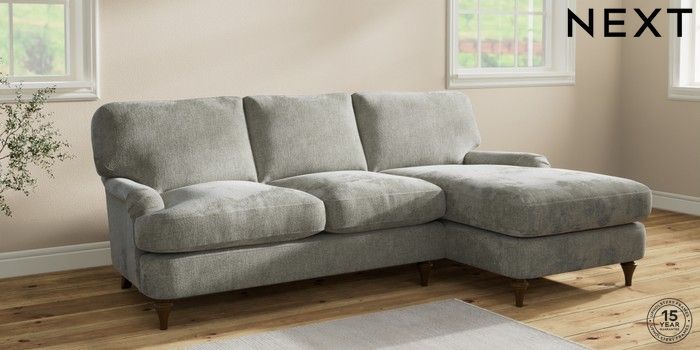 6.12.1 Buy Sadie Deep Relaxed Sit Medium Sofa Chaise - Right Hand Chunky Chenille Light Grey High Slim Turned - Mid from the Next UK online shop Click here to use our accessible website
