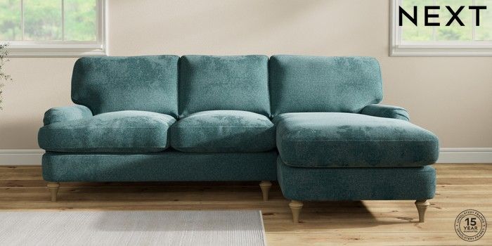 7.0.3 Buy Sadie Deep Relaxed Sit Medium Sofa Chaise - Right Hand Chunky Chenille Mid Teal Green High Slim Turned - Light from the Next UK online shop Click here to use our accessible website