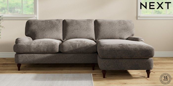 7.0.3 Buy Sadie Deep Relaxed Sit Medium Sofa Chaise - Right Hand Chunky Chenille Mink Brown High Slim Turned - Dark Brown from the Next UK online shop Click here to use our accessible website