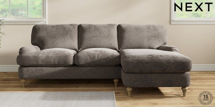 7.0.3 Buy Sadie Deep Relaxed Sit Medium Sofa Chaise - Right Hand Chunky Chenille Mink Brown High Slim Turned - Light from the Next UK online shop Click here to use our accessible website