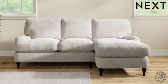 7.0.3 Buy Sadie Deep Relaxed Sit Medium Sofa Chaise - Right Hand Chunky Chenille Oyster High Slim Turned - Dark from the Next UK online shop Click here to use our accessible website