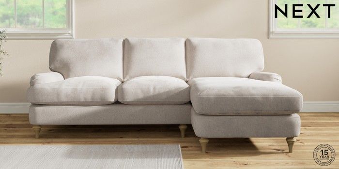 7.0.3 Buy Sadie Deep Relaxed Sit Medium Sofa Chaise - Right Hand Chunky Chenille Oyster High Slim Turned - Light from the Next UK online shop Click here to use our accessible website