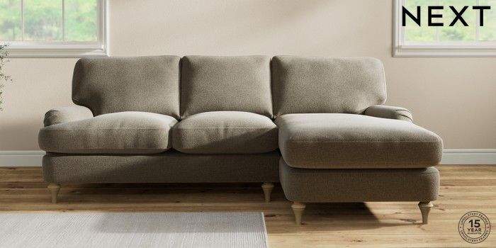 7.0.3 Buy Sadie Deep Relaxed Sit Medium Sofa Chaise - Right Hand Chunky Marl Light Olive Green High Slim Turned - Light from the Next UK online shop Click here to use our accessible website