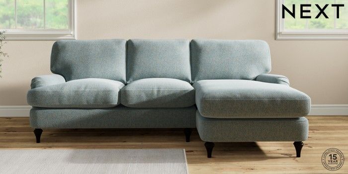 7.0.3 Buy Sadie Deep Relaxed Sit Medium Sofa Chaise - Right Hand Chunky Marl Mid Blue High Slim Turned - Dark from the Next UK online shop Click here to use our accessible website