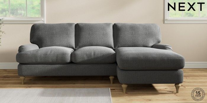 7.0.3 Buy Sadie Deep Relaxed Sit Medium Sofa Chaise - Right Hand Chunky Texture Dark Grey High Slim Turned - Light from the Next UK online shop Click here to use our accessible website
