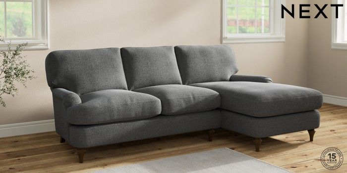 6.12.1 Buy Sadie Deep Relaxed Sit Medium Sofa Chaise - Right Hand Chunky Texture Dark Grey High Slim Turned - Mid from the Next UK online shop Click here to use our accessible website