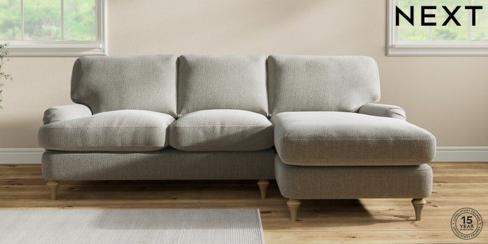 7.0.3 Buy Sadie Deep Relaxed Sit Medium Sofa Chaise - Right Hand Chunky Texture Dove High Slim Turned - Light from the Next UK online shop Click here to use our accessible website